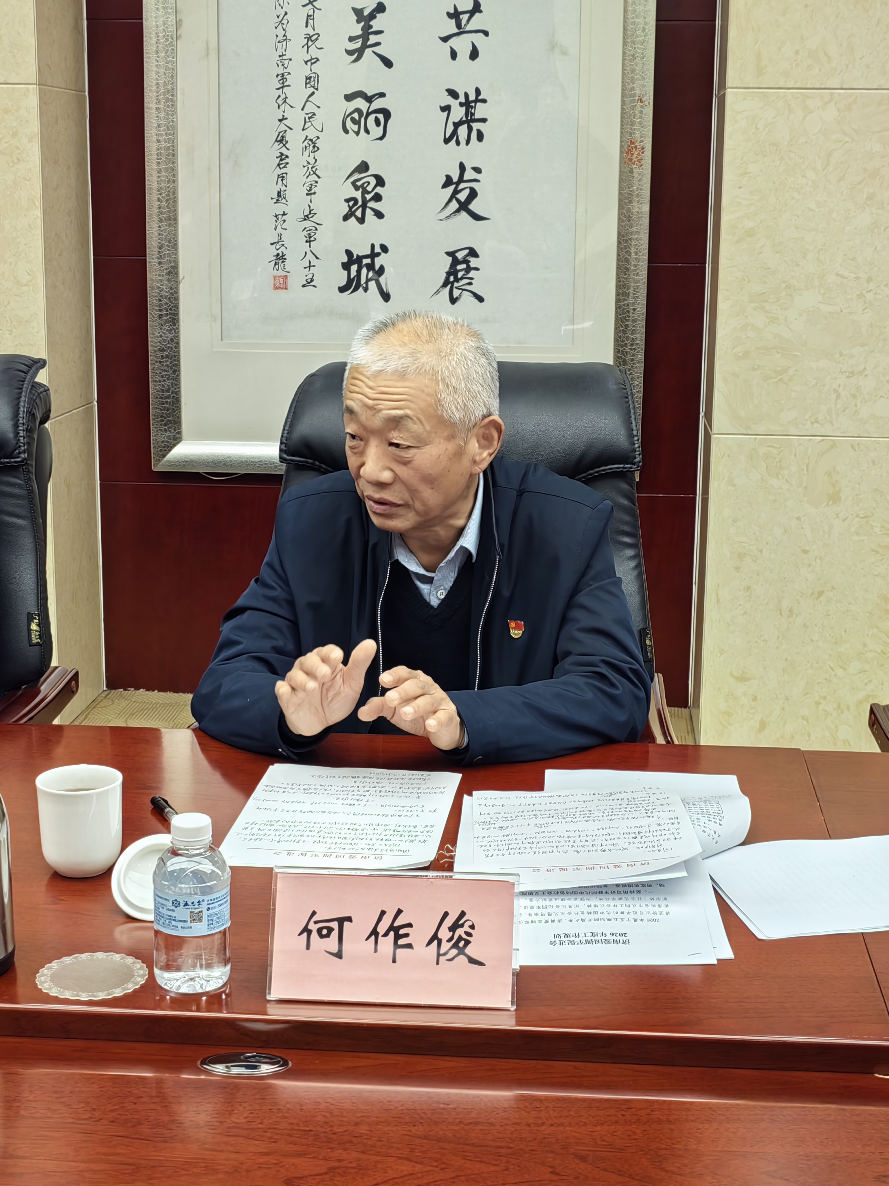 本站讯(记者 [通讯员刘华森]) 为深入学习贯彻党的二十届四中全会精神,筑牢爱国拥军事业发展根基,1月9日上午,济南爱国拥军促进会第三届理事会第六次会议暨专题学习会在济南市退役军人服务中心第一会议室隆重召开。济南爱国拥军促进会名誉会长潘传利、副会长李文、何作俊会长等领导出席会议,理事会成员、会员代表及军地相关单位负责人齐聚一堂,共学精神、共商发展。小硬汉军事夏令营作为促进会理事单位,受邀全程参与学习交流,深度融入军地协同育人机制。